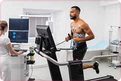 A cardiac stress test evaluates heart function during exercise. Detects coronary artery disease and abnormal heart rhythms, ensuring early diagnosis and prevention of cardiovascular complications.